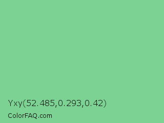 Yxy 52.485,0.293,0.42 Color is a light green color and the nearest color is De York #7ac488. Hex code #7cd293 and RGB value is rgb(124,210,147). In RGB color space, this color is composed of 49% red, 82% green, 58% blue, In CMYK color space, this color is composed of 41% cyan, 0% magenta, 30% yellow , 18% black , In HSL color space, this color has a hue angle of 136° , 49% saturation and 65% lightness.