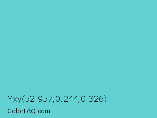 Yxy 52.957,0.244,0.326 Color is a light cyan color and the nearest color is Viking #64ccdb. Hex code #62d1d3 and RGB value is rgb(98,209,211). In RGB color space, this color is composed of 38% red, 82% green, 83% blue, In CMYK color space, this color is composed of 54% cyan, 1% magenta, 0% yellow , 17% black , In HSL color space, this color has a hue angle of 181° , 56% saturation and 61% lightness.