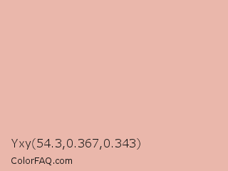Yxy 54.3,0.367,0.343 Color is a light red color and the nearest color is Shilo #e8b9b3. Hex code #eab7ab and RGB value is rgb(234,183,171). In RGB color space, this color is composed of 92% red, 72% green, 67% blue, In CMYK color space, this color is composed of 0% cyan, 22% magenta, 27% yellow , 8% black , In HSL color space, this color has a hue angle of 11° , 60% saturation and 79% lightness.