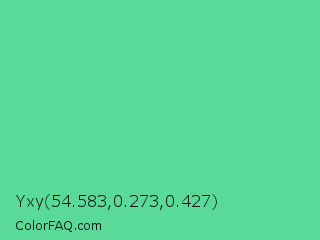 Yxy 54.583,0.273,0.427 Color is a normal green color and the nearest color is Medium Aquamarine #66ddaa. Hex code #59da98 and RGB value is rgb(89,218,152). In RGB color space, this color is composed of 35% red, 85% green, 60% blue, In CMYK color space, this color is composed of 59% cyan, 0% magenta, 30% yellow , 15% black , In HSL color space, this color has a hue angle of 149° , 64% saturation and 60% lightness.