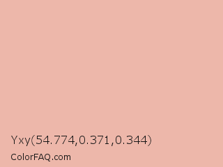Yxy 54.774,0.371,0.344 Color is a light red color and the nearest color is Shilo #e8b9b3. Hex code #edb7aa and RGB value is rgb(237,183,170). In RGB color space, this color is composed of 93% red, 72% green, 67% blue, In CMYK color space, this color is composed of 0% cyan, 23% magenta, 28% yellow , 7% black , In HSL color space, this color has a hue angle of 12° , 65% saturation and 80% lightness.