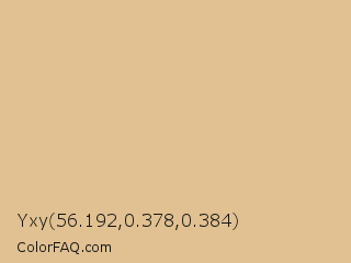 Yxy 56.192,0.378,0.384 Color is a light orange color and the nearest color is Calico #e0c095. Hex code #e1c191 and RGB value is rgb(225,193,145). In RGB color space, this color is composed of 88% red, 76% green, 57% blue, In CMYK color space, this color is composed of 0% cyan, 14% magenta, 36% yellow , 12% black , In HSL color space, this color has a hue angle of 36° , 57% saturation and 73% lightness.
