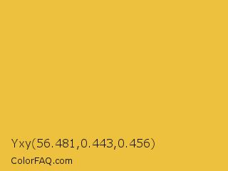 Yxy 56.481,0.443,0.456 Color is a normal orange color and the nearest color is Meat Brown #e5b73b. Hex code #edc13e and RGB value is rgb(237,193,62). In RGB color space, this color is composed of 93% red, 76% green, 24% blue, In CMYK color space, this color is composed of 0% cyan, 19% magenta, 74% yellow , 7% black , In HSL color space, this color has a hue angle of 45° , 83% saturation and 59% lightness.