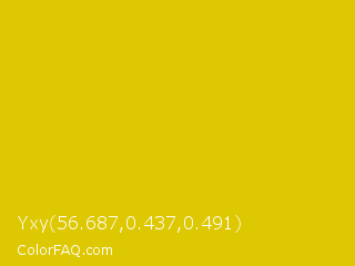 Yxy 56.687,0.437,0.491 Color is a normal yellow color and the nearest color is Citrine #e4d00a. Hex code #ddc801 and RGB value is rgb(221,200,1). In RGB color space, this color is composed of 87% red, 78% green, 0% blue, In CMYK color space, this color is composed of 0% cyan, 10% magenta, 100% yellow , 13% black , In HSL color space, this color has a hue angle of 54° , 99% saturation and 44% lightness.