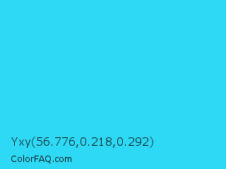 Yxy 56.776,0.218,0.292 Color is a normal cyan color and the nearest color is Loeen #15f2fd. Hex code #2dd9f5 and RGB value is rgb(45,217,245). In RGB color space, this color is composed of 18% red, 85% green, 96% blue, In CMYK color space, this color is composed of 82% cyan, 11% magenta, 0% yellow , 4% black , In HSL color space, this color has a hue angle of 188° , 91% saturation and 57% lightness.