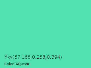 Yxy 57.166,0.258,0.394 Color is a normal green color and the nearest color is Eucalyptus #44d7a8. Hex code #51deb1 and RGB value is rgb(81,222,177). In RGB color space, this color is composed of 32% red, 87% green, 69% blue, In CMYK color space, this color is composed of 64% cyan, 0% magenta, 20% yellow , 13% black , In HSL color space, this color has a hue angle of 161° , 68% saturation and 59% lightness.