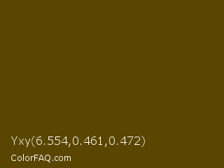 Yxy 6.554,0.461,0.472 Color is a very dark yellow color and the nearest color is Pineapple #563c0d. Hex code #5a4600 and RGB value is rgb(90,70,0). In RGB color space, this color is composed of 35% red, 27% green, 0% blue, In CMYK color space, this color is composed of 0% cyan, 22% magenta, 100% yellow , 65% black , In HSL color space, this color has a hue angle of 47° , 100% saturation and 18% lightness.