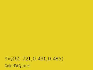 Yxy 61.721,0.431,0.486 Color is a normal yellow color and the nearest color is Sunflower #e4d422. Hex code #e4d022 and RGB value is rgb(228,208,34). In RGB color space, this color is composed of 89% red, 82% green, 13% blue, In CMYK color space, this color is composed of 0% cyan, 9% magenta, 85% yellow , 11% black , In HSL color space, this color has a hue angle of 54° , 78% saturation and 51% lightness.
