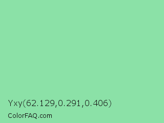 Yxy 62.129,0.291,0.406 Color is a light green color and the nearest color is Vista Blue #8fd6b4. Hex code #8be1a7 and RGB value is rgb(139,225,167). In RGB color space, this color is composed of 55% red, 88% green, 65% blue, In CMYK color space, this color is composed of 38% cyan, 0% magenta, 26% yellow , 12% black , In HSL color space, this color has a hue angle of 140° , 59% saturation and 71% lightness.