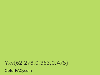 Yxy 62.278,0.363,0.475 Color is a light lime color and the nearest color is June Bud #bdda57. Hex code #b8dc63 and RGB value is rgb(184,220,99). In RGB color space, this color is composed of 72% red, 86% green, 39% blue, In CMYK color space, this color is composed of 16% cyan, 0% magenta, 55% yellow , 14% black , In HSL color space, this color has a hue angle of 78° , 63% saturation and 63% lightness.