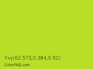 Yxy 62.573,0.384,0.52 Color is a normal lime color and the nearest color is Inch Worm #b0e313. Hex code #b8de27 and RGB value is rgb(184,222,39). In RGB color space, this color is composed of 72% red, 87% green, 15% blue, In CMYK color space, this color is composed of 17% cyan, 0% magenta, 82% yellow , 13% black , In HSL color space, this color has a hue angle of 72° , 73% saturation and 51% lightness.