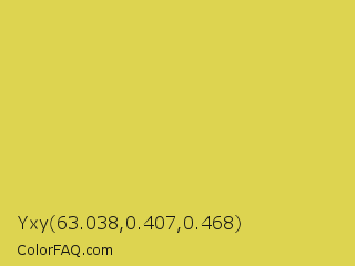 Yxy 63.038,0.407,0.468 Color is a normal yellow color and the nearest color is Wattle #dcd747. Hex code #ddd450 and RGB value is rgb(221,212,80). In RGB color space, this color is composed of 87% red, 83% green, 31% blue, In CMYK color space, this color is composed of 0% cyan, 4% magenta, 64% yellow , 13% black , In HSL color space, this color has a hue angle of 56° , 67% saturation and 59% lightness.
