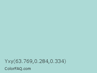 Yxy 63.769,0.284,0.334 Color is a light cyan color and the nearest color is Aqua Island #a1dad7. Hex code #acdad6 and RGB value is rgb(172,218,214). In RGB color space, this color is composed of 67% red, 85% green, 84% blue, In CMYK color space, this color is composed of 21% cyan, 0% magenta, 2% yellow , 15% black , In HSL color space, this color has a hue angle of 175° , 38% saturation and 76% lightness.