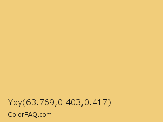 Yxy 63.769,0.403,0.417 Color is a light orange color and the nearest color is Rob Roy #eac674. Hex code #f1cd7a and RGB value is rgb(241,205,122). In RGB color space, this color is composed of 95% red, 80% green, 48% blue, In CMYK color space, this color is composed of 0% cyan, 15% magenta, 49% yellow , 5% black , In HSL color space, this color has a hue angle of 42° , 81% saturation and 71% lightness.
