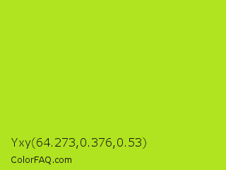 Yxy 64.273,0.376,0.53 Color is a normal lime color and the nearest color is Inch Worm #b0e313. Hex code #b0e320 and RGB value is rgb(176,227,32). In RGB color space, this color is composed of 69% red, 89% green, 13% blue, In CMYK color space, this color is composed of 22% cyan, 0% magenta, 86% yellow , 11% black , In HSL color space, this color has a hue angle of 76° , 78% saturation and 51% lightness.