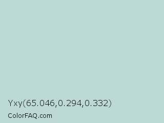 Yxy 65.046,0.294,0.332 Color is a light cyan color and the nearest color is Tiara #c3d1d1. Hex code #bcd9d6 and RGB value is rgb(188,217,214). In RGB color space, this color is composed of 74% red, 85% green, 84% blue, In CMYK color space, this color is composed of 13% cyan, 0% magenta, 1% yellow , 15% black , In HSL color space, this color has a hue angle of 174° , 28% saturation and 79% lightness.