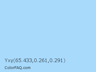 Yxy 65.433,0.261,0.291 Color is a very light blue color and the nearest color is Fresh Air #a6e7ff. Hex code #a8dafb and RGB value is rgb(168,218,251). In RGB color space, this color is composed of 66% red, 85% green, 98% blue, In CMYK color space, this color is composed of 33% cyan, 13% magenta, 0% yellow , 2% black , In HSL color space, this color has a hue angle of 204° , 91% saturation and 82% lightness.