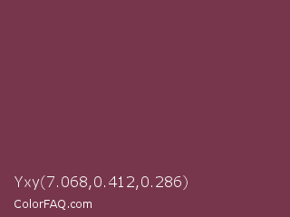 Yxy 7.068,0.412,0.286 Color is a normal rose color and the nearest color is Catawba #703642. Hex code #77364b and RGB value is rgb(119,54,75). In RGB color space, this color is composed of 47% red, 21% green, 29% blue, In CMYK color space, this color is composed of 0% cyan, 55% magenta, 37% yellow , 53% black , In HSL color space, this color has a hue angle of 341° , 38% saturation and 34% lightness.