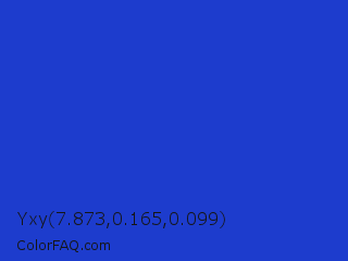 Yxy 7.873,0.165,0.099 Color is a normal blue color and the nearest color is Persian Blue #1c39bb. Hex code #1d3ccd and RGB value is rgb(29,60,205). In RGB color space, this color is composed of 11% red, 24% green, 80% blue, In CMYK color space, this color is composed of 86% cyan, 71% magenta, 0% yellow , 20% black , In HSL color space, this color has a hue angle of 229° , 75% saturation and 46% lightness.