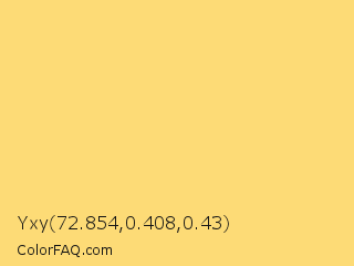 Yxy 72.854,0.408,0.43 Color is a light orange color and the nearest color is Mellow Yellow #f8de7e. Hex code #fddb76 and RGB value is rgb(253,219,118). In RGB color space, this color is composed of 99% red, 86% green, 46% blue, In CMYK color space, this color is composed of 0% cyan, 13% magenta, 53% yellow , 1% black , In HSL color space, this color has a hue angle of 45° , 97% saturation and 73% lightness.