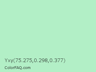 Yxy 75.275,0.298,0.377 Color is a very light green color and the nearest color is Madang #b7f0be. Hex code #b2efc6 and RGB value is rgb(178,239,198). In RGB color space, this color is composed of 70% red, 94% green, 78% blue, In CMYK color space, this color is composed of 26% cyan, 0% magenta, 17% yellow , 6% black , In HSL color space, this color has a hue angle of 140° , 66% saturation and 82% lightness.