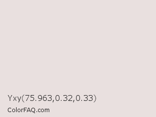 Yxy 75.963,0.32,0.33 Color is a very light red color and the nearest color is Bon Jour #e5e0e1. Hex code #e9e0df and RGB value is rgb(233,224,223). In RGB color space, this color is composed of 91% red, 88% green, 87% blue, In CMYK color space, this color is composed of 0% cyan, 4% magenta, 4% yellow , 9% black , In HSL color space, this color has a hue angle of 6° , 19% saturation and 89% lightness.