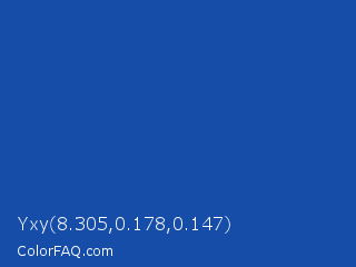 Yxy 8.305,0.178,0.147 Color is a normal blue color and the nearest color is Tory Blue #1450aa. Hex code #164da8 and RGB value is rgb(22,77,168). In RGB color space, this color is composed of 9% red, 30% green, 66% blue, In CMYK color space, this color is composed of 87% cyan, 54% magenta, 0% yellow , 34% black , In HSL color space, this color has a hue angle of 217° , 77% saturation and 37% lightness.