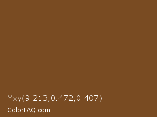Yxy 9.213,0.472,0.407 Color is a dark orange color and the nearest color is Russet #80461b. Hex code #794b22 and RGB value is rgb(121,75,34). In RGB color space, this color is composed of 47% red, 29% green, 13% blue, In CMYK color space, this color is composed of 0% cyan, 38% magenta, 72% yellow , 53% black , In HSL color space, this color has a hue angle of 28° , 56% saturation and 30% lightness.