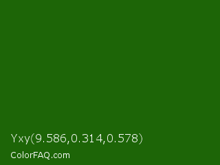 Yxy 9.586,0.314,0.578 Color is a very dark green color and the nearest color is Lincoln Green #195905. Hex code #1d6507 and RGB value is rgb(29,101,7). In RGB color space, this color is composed of 11% red, 40% green, 3% blue, In CMYK color space, this color is composed of 71% cyan, 0% magenta, 93% yellow , 60% black , In HSL color space, this color has a hue angle of 106° , 87% saturation and 21% lightness.